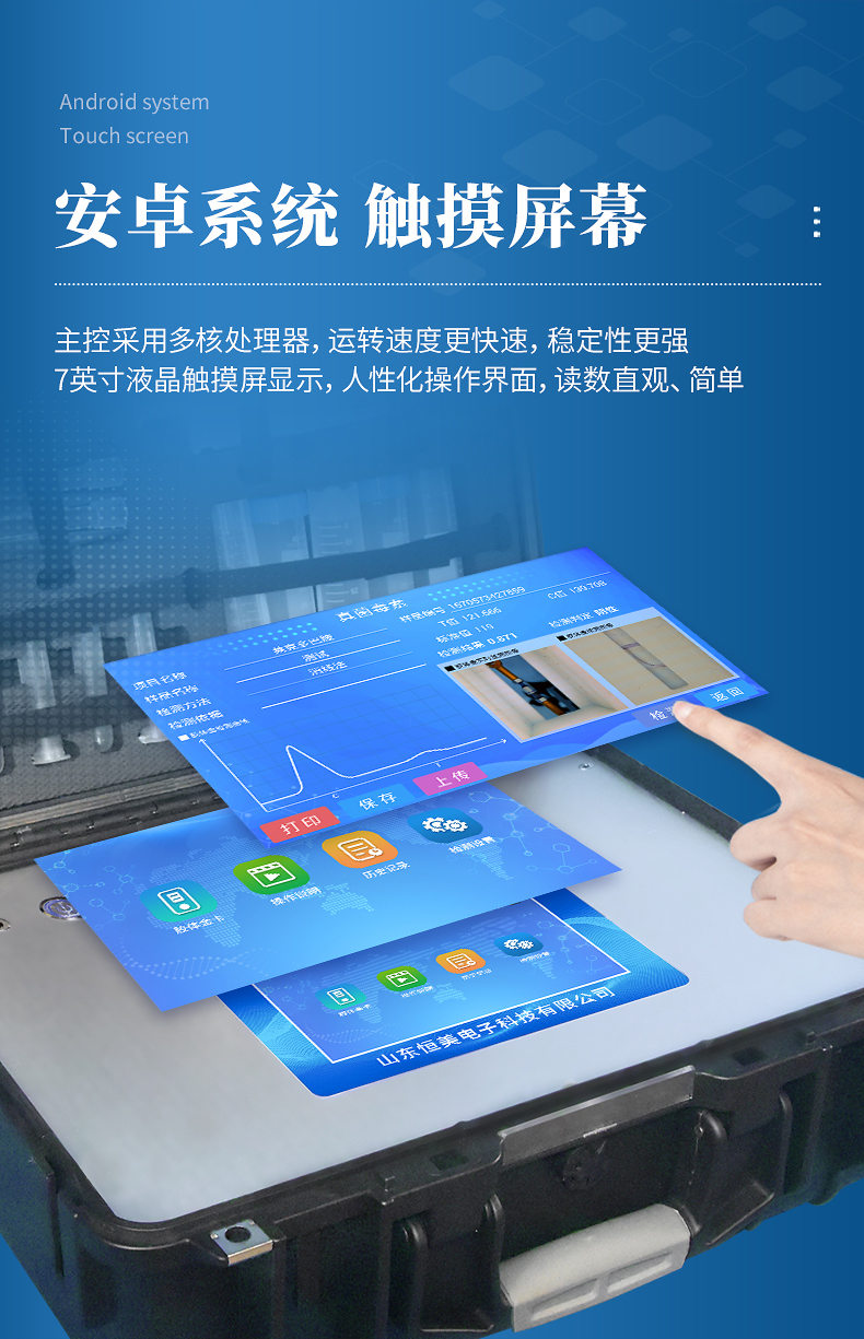 1、安卓智能操作系統,采用更加高效和人性化操作,儀器具有網(wǎng)線(xiàn)連接、wifi聯(lián)網(wǎng)上傳、GPRS無(wú)線(xiàn)遠傳功能,快速上傳數據。