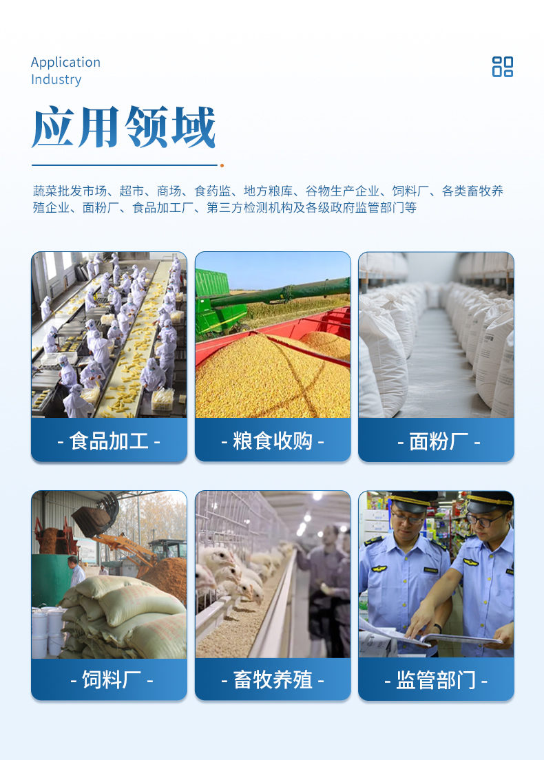 熒光定量檢測儀采用熒光定量快速檢測原理,主要檢測糧油谷物飼料中真重金屬鉛和鎘,檢測樣品涵蓋糧食谷物(大米、玉米、小麥、大麥、高粱等)及其制品、飼料及其原料、食用油脂、牛奶及其制品等;樣品前處理簡(jiǎn)單,整個(gè)檢測過(guò)程檢測12 min,產(chǎn)品適用于地方糧庫、谷物生產(chǎn)企業(yè)、飼料廠(chǎng)、各類(lèi)畜牧養殖企業(yè)、面粉廠(chǎng)、食品加工廠(chǎng)、第三方檢測機構及各級政府監管部門(mén);
