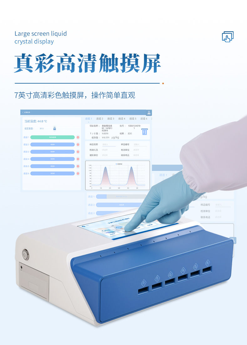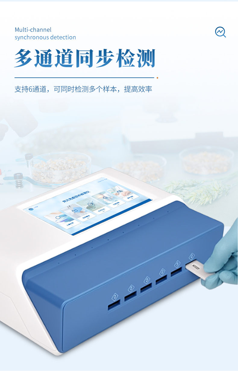 4、 內置定量標準曲線(xiàn):儀器內置標準曲線(xiàn),無(wú)需使用標準品,檢測時(shí)無(wú)需做標準曲線(xiàn),既節省了成本,也避免了操作人員與嘔吐毒素的接觸,保護操作人員的安全;
