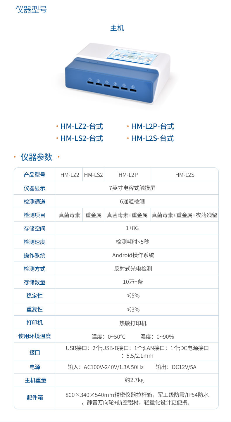 6、 移動(dòng)便攜:儀器質(zhì)量輕,體積小,配置全套前處理設備和拉桿箱,適用于現場(chǎng)測試及實(shí)驗室測試。