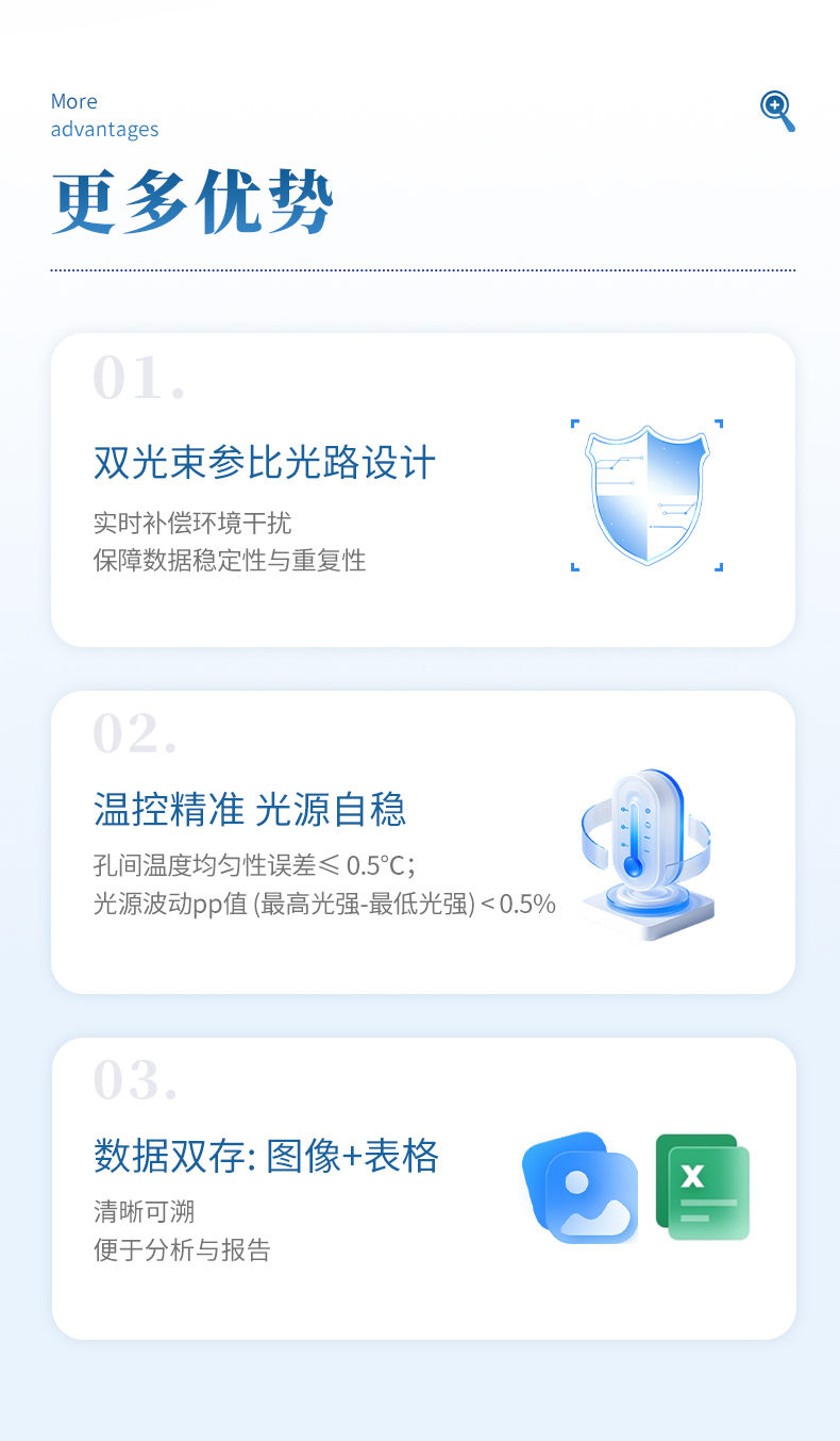 7. 雙光束參比光路設計,實(shí)時(shí)補償環(huán)境干擾,保障數據穩定性與重復性;