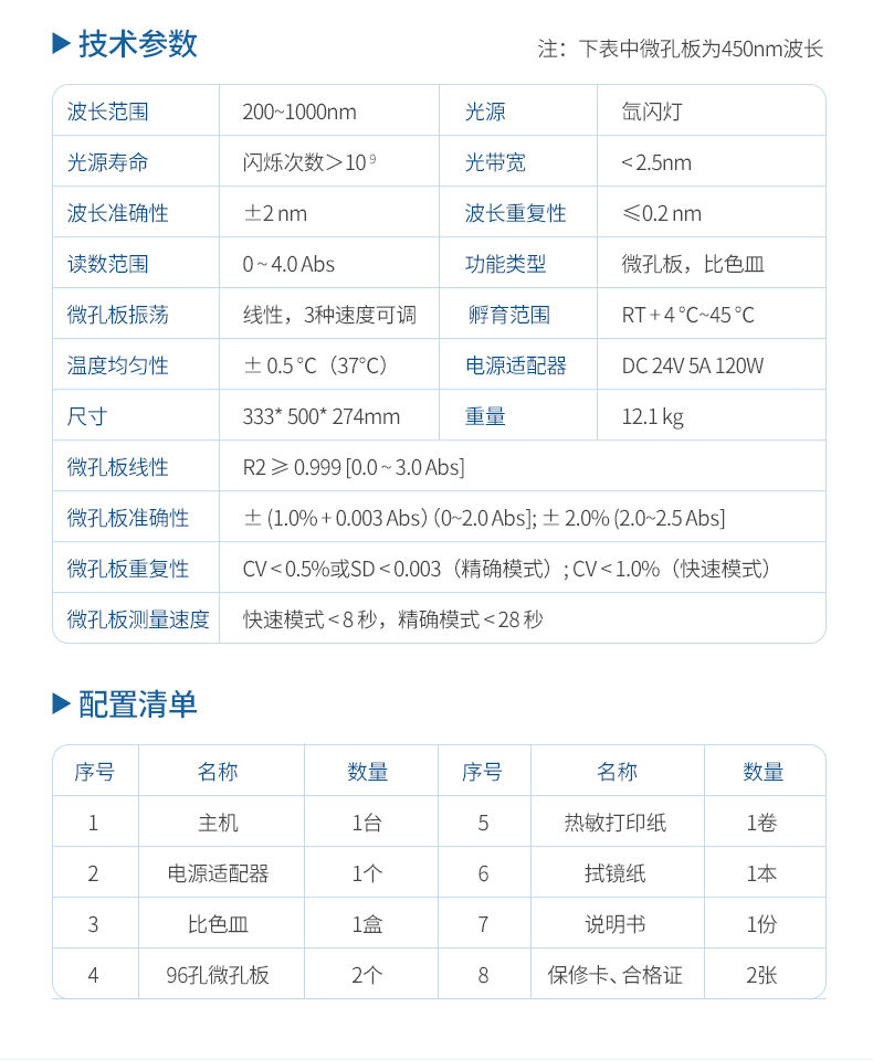 11. 微孔板重復性(450 nm):CV < 0.5%或SD < 0.003(**模式);CV < 1.0%(快速模式)