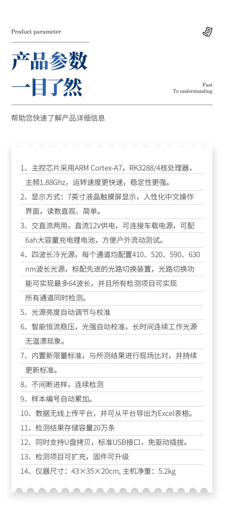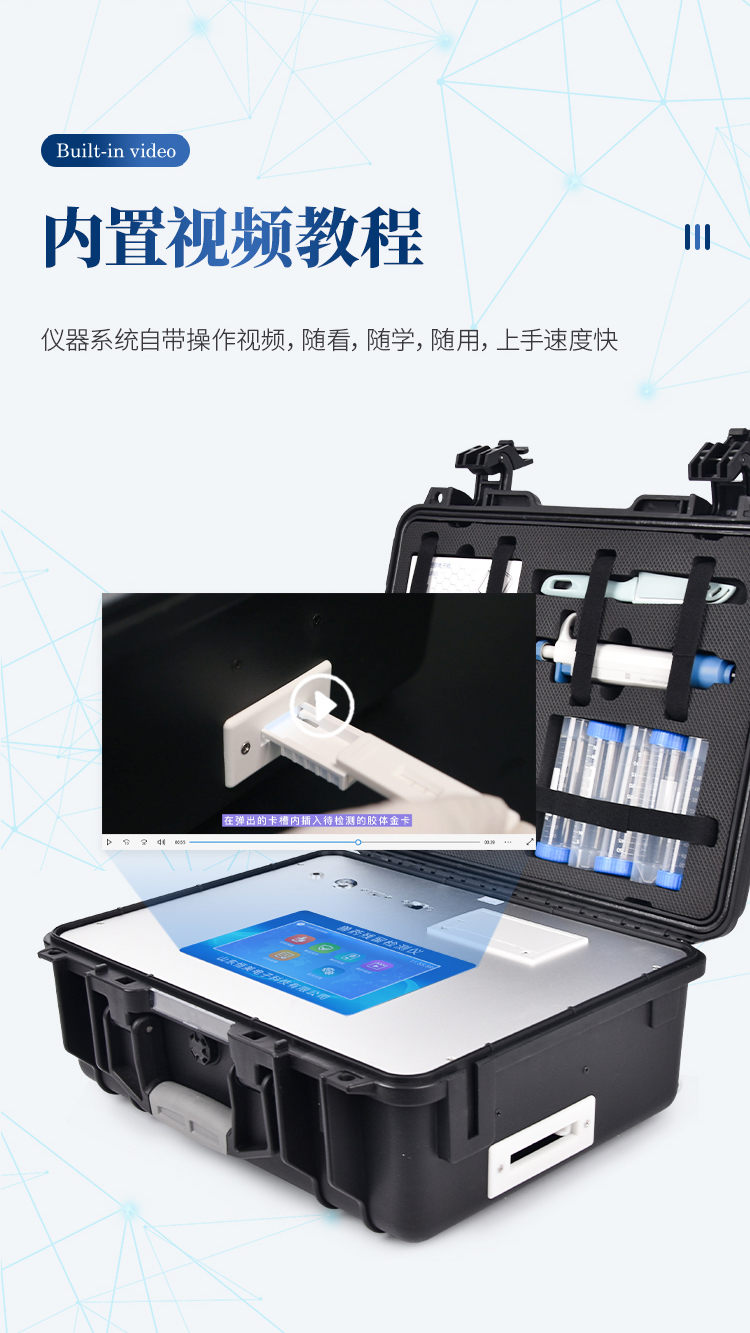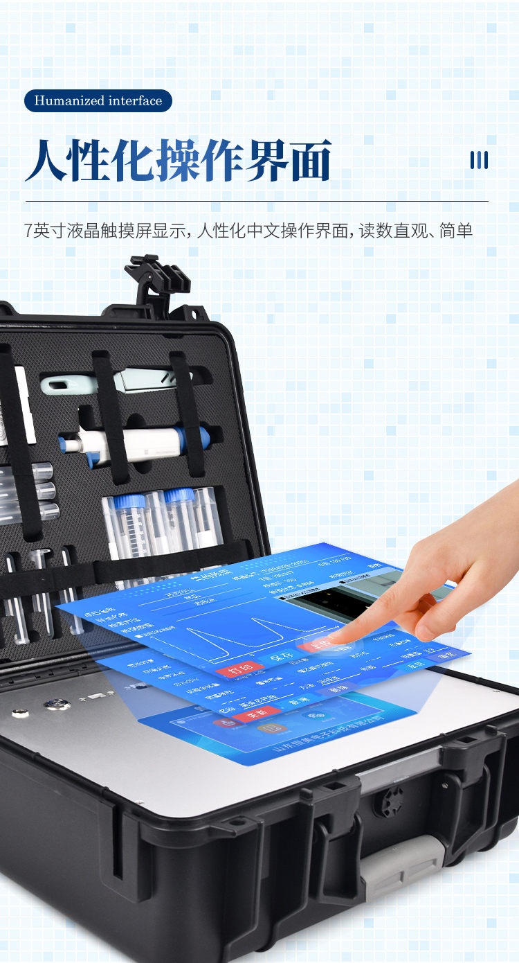 6、一體化便攜式快檢設備,滿(mǎn)足現場(chǎng)及流動(dòng)檢測使用需求,能夠在同一軟件下實(shí)現所有檢測項目的檢測,并可通過(guò)同一窗口直觀(guān)顯示檢測結果。