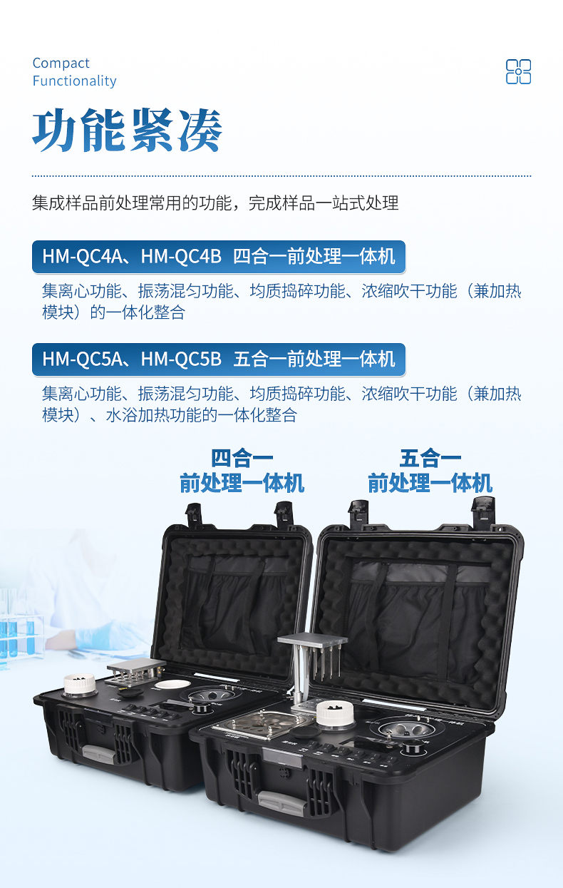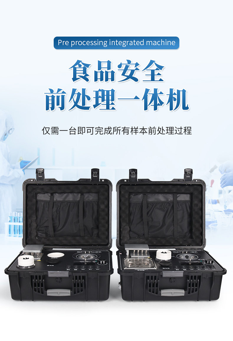 應國內用戶(hù)的實(shí)際需求,自行研制開(kāi)發(fā)的新型儀器——QC05型樣品前處理一體機。樣品前處理集成箱將樣本前處理過(guò)程中樣品濃縮、水浴恒溫、離心分層、均質(zhì)、振蕩混勻等步驟所需設備進(jìn)行集成,僅需一臺樣品前處理集成箱設備即可完成所有樣本前處理過(guò)程,并且方便攜帶,不僅適用于現場(chǎng)檢測使用,還可用于色譜、質(zhì)譜等分析樣品的純化和制備。